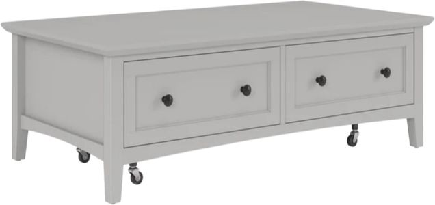 The Grace coffee table offers a blend of classic design and modern appeal, featuring a wide profile with two functional storage drawers. This transitional piece is constructed from wood, complete with black stepped knobs for an elegant contrast.Read More