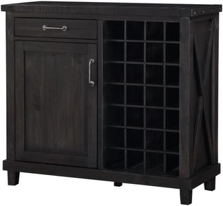 Front top, sides, legs and frame are constructed from solid pine; drawer boxes, dust cover, back panel, shelves and wine rack are plywood; item does not contain MDF, particle board or engineered wood