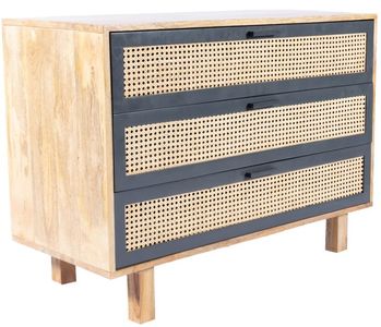 A stylish combination of solid mango wood and woven cane gives the Ashton chest a fresh contemporary style. Three spacious, dark-framed drawers maximizes storage options for smaller bedrooms. The metal drawer glides allow for easy access and durability.Read More