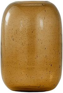 The Circe vase features a curved cylindrical, playful yet elegant shape reminiscent of an elongated bubble. Little bubbles scattered throughout enhance its whimsical charm. Crafted from glass in a vintage hue of warm amber orange, it's an ideal choice for showcasing floral arrangements or serving as a standalone decorative piece.Read More