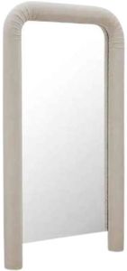 Large floor mirror with modern, soft corners with ruched detail & soft-touch fabric upholstery