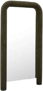 Large floor mirror with modern, soft corners with ruched detail & soft-touch fabric upholstery