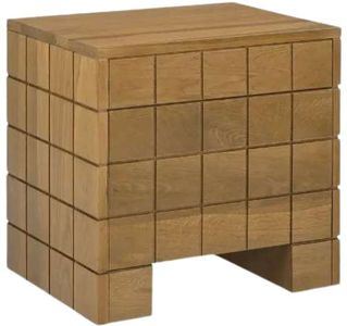 The nightstand’s striking geometry brings out the oak wood's mid-tone brown finish to blend seamlessly into various interiors with its subtle sophistication. This piece features a unique geometric arrangement with a top drawer composed of a single geometric row and a larger drawer comprised of three geometric rows.Read More