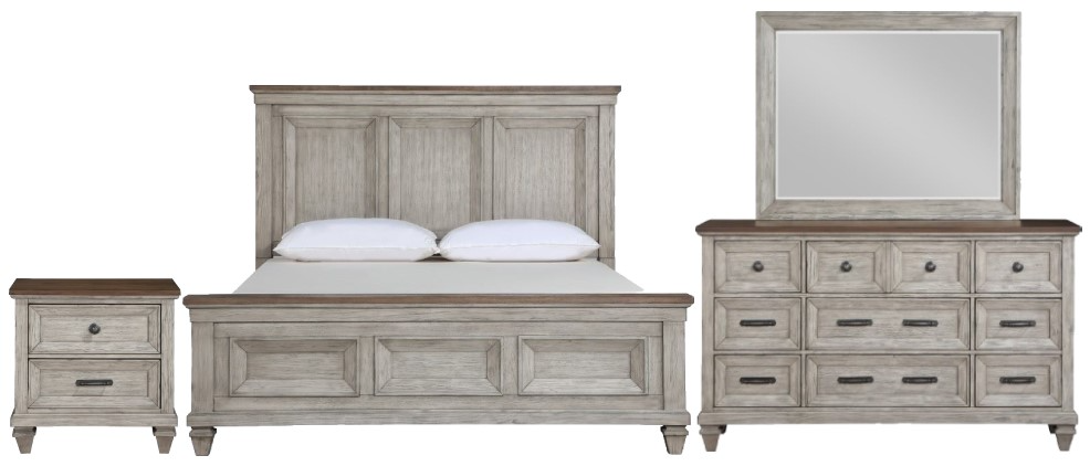 Set includes bed, dresser, mirror, and nightstand