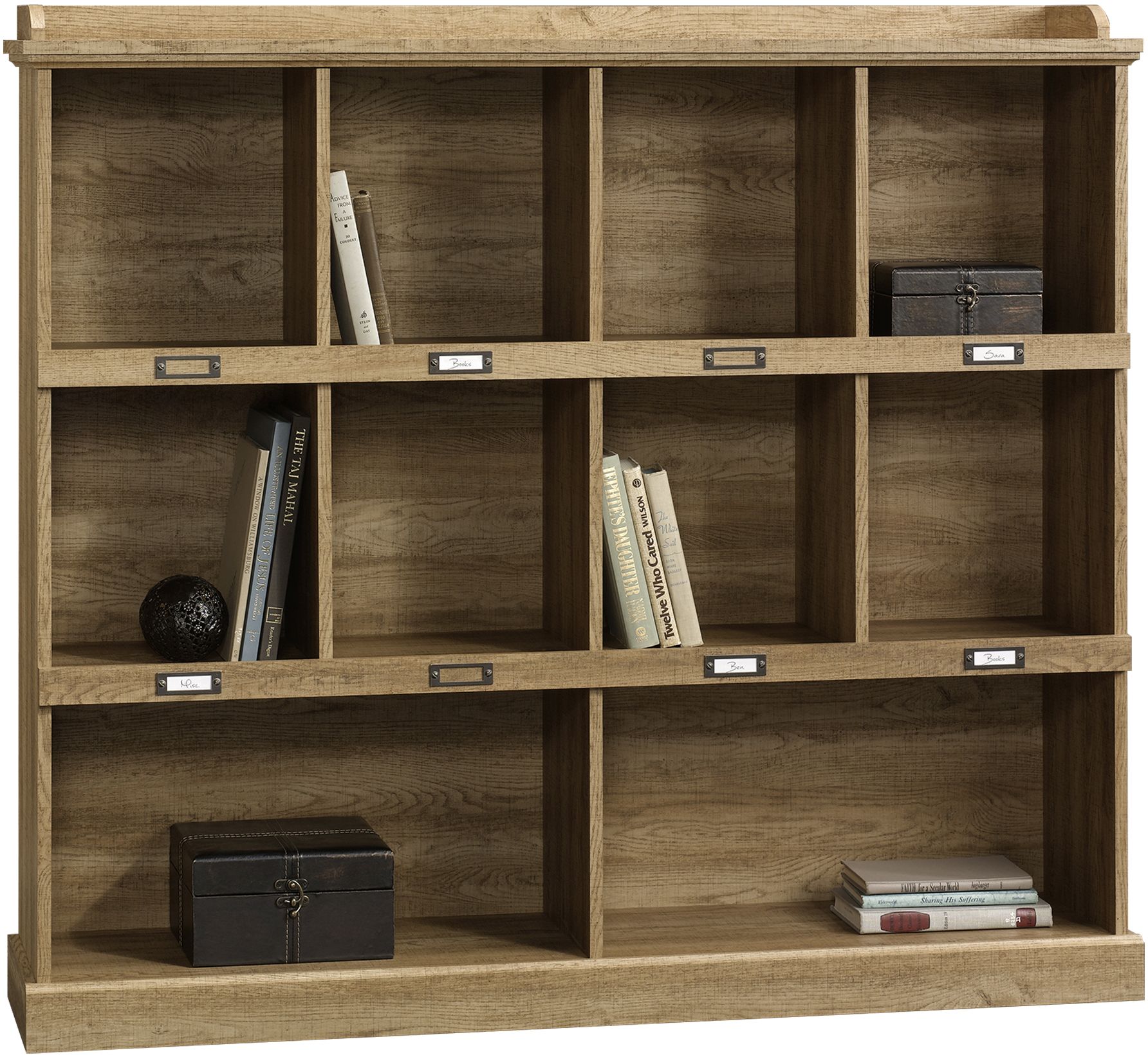 Don’t sacrifice style to add extra storage in your home. We’ve got you covered with a Sauder cubby bookcase for storage and display. From the Barrister Lane storage furniture collection, this bookcase features 10 storage cubbyholes for you to organize, store and display your home essentials. Stylishly store and display your collection of books, decorative knick-knacks, miscellaneous office supplies, and household items. There is plenty of room for all your stuff on this bookcase. Keep your home organized and clutter-free by adding labels to the ID label tags on this bookcase. Label each cubby so you can easily find what you’re looking for. Use the spacious top surface to display a speaker system, an accent lamp, a vase full of flowers and more. Functional storage compartments and style makes this bookcase the perfect fit for any room in your home. The neutral Salt Oak finish perfectly coordinates with other room accents, storage and furniture in your home.