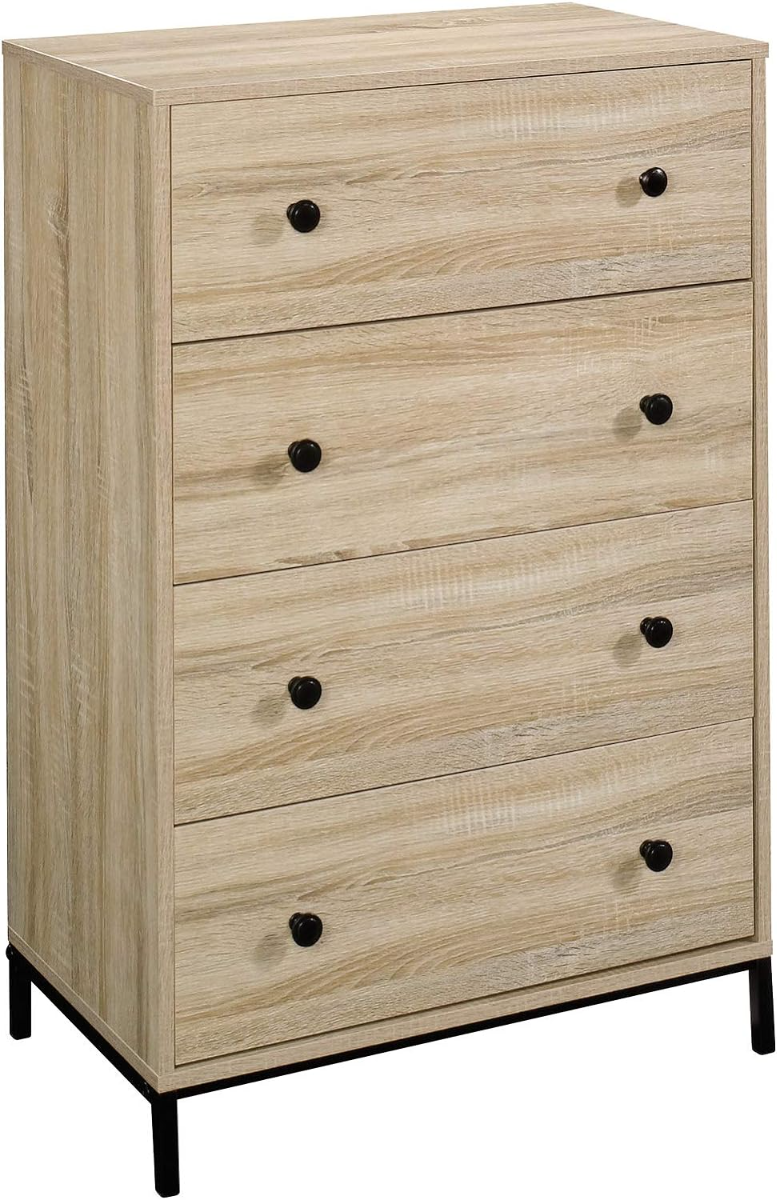 Are you running out of storage space in your bedroom? Does your existing bedroom furniture need help? No worries. We’ve got just what you need. Create the additional storage space you need while adding the style that you love with this 4-drawer chest from the North Avenue collection. This wood chest of drawers features four spacious drawers that open and close on smooth metal runners creating a convenient spot for you to stow away a variety of different items like stacks of denim jeans and button up flannel to comfy pajamas and your collection of t-shirts. The large top surface provides you with additional space to store and display items like a small mirror, decorative plants, bottles of cologne, and photos of your family and friends. There is a place for all of your things! Additional features that this 4 drawer chest includes is a durable, black metal base. Finished in Charter Oak and detailed with attractive hardware, this bedroom dresser is the solution to your storage woes.