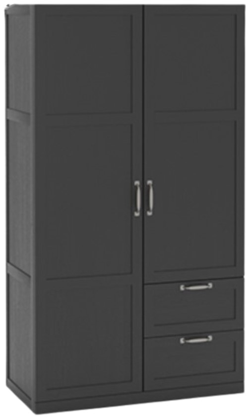 The practical wardrobe storage cabinet from the sauder select collection offers three different types of storage-from drawers to shelves to hanging storage-in one useful package. Finished in elegant raven oak® and accented with framed panel detail, this wardrobe cabinet is the perfect organization solution.Read More