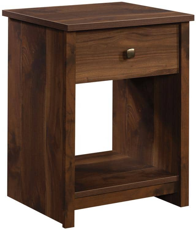 Looking for a stylish nightstand in a universal dark finish? The nightstand with drawer from the River Ranch™ collection is here to answer the call. The lower open shelf offers space for additional storage of stacks of books and magazines, an organizing bin, or home décor. Customize this farmhouse nightstand to fit your needs! Finished on all sides for versatile placement, this bedside table with drawer will look polished from every angle. Charging your phone has never been easier with the optional Hidden Wireless Qi Compatible Charger by Eggtronics 425905 (sold separately – visit sauder.com for more information). Your bedside table with storage will be assembled before you know it, thanks to a T-slot drawer system and slide-on moldings. Finished in Grand Walnut®, this nightstand brings style and function to your bedroom.