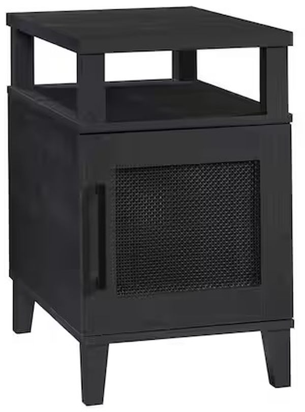 This side table with open shelf offers a spacious top surface, providing the ideal amount of space for storing and displaying all your chairside and bedside needs – like an accent lamp, alarm clock, framed photos, and a refreshing drink. A side table with open shelf allows storage of books, magazines, décor, and more. The door features a rattan insert and can be hung to open left or right. This hidden storage area provides additional space to stow away miscellaneous items like blankets, games, extra remotes, and other stuff to keep out of sight. Finished on all sides for versatile placement, this end table with door will look polished next to your couch, a guest bed, down the hallway, or just about wherever. A Raven Oak® finish accompanied with black door handle and tapered feet give this side table with open storage a unique look that is sure to enhance any home.