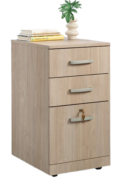 Create essential office organization while never sacrificing style with this 3-drawer file cabinet from the Via collection. This versatile file pedestal features two small drawers that open and close on smooth metal runners for convenient storage of office supplies and emergency snacks.Read More