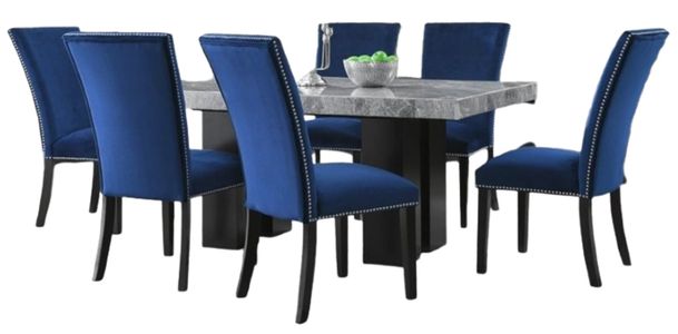 Elegant dining with a modern twist the Camila gray marble dining set elevates your dining experience in style. The 70" long table with its pristine gray marble surface becomes the centerpiece of your dining room effortlessly accommodating eight guests in style.Read More