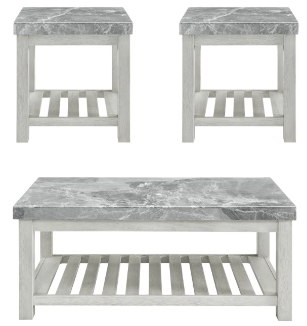 Set includes gray marble top coffee table and 2 end tables. Each item also sold separately