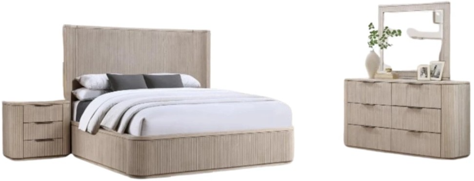 Set includes the henry king reeded bed, nightstand, dresser and mirror. Each item also sold separately