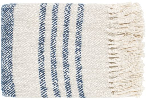 The Chamonix Dark Blue 50" x 60" Throw Blanket from Surya is hand woven and made up of 70% Cotton, 24% Acrylic, 6% Nylon.Read More