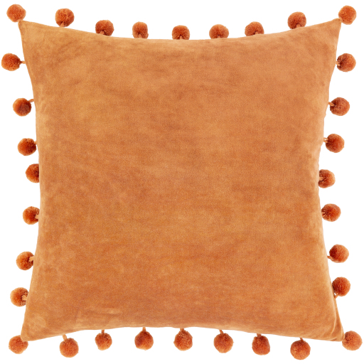 The Serengeti Burnt Orange 20" x 20" Toss Pillow from Surya features a down insert, Pom Pom design, and is made in India.